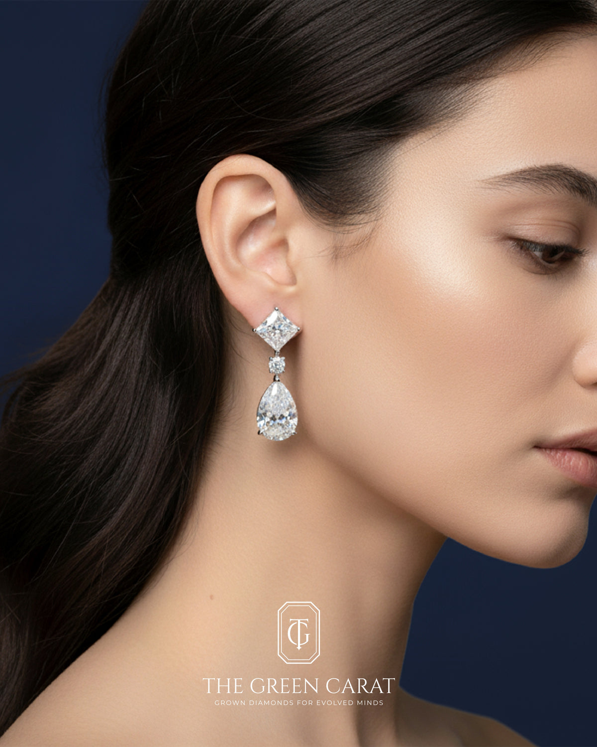 Green carat lab grown diamond earrings, timeless treasures where rare gems and romantic design create everlasting allure.